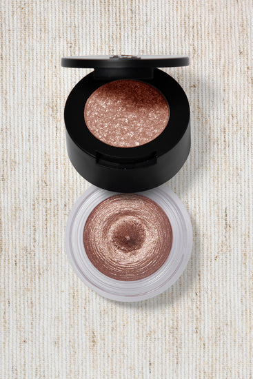 Create creamy-matte or metallic-glitter looks with two luxe formulas (in a single gorgeous package). Under the top lid is a light-reflecting, micro-glitter eyeshadow infused with high-shine pearls. Inside the glass is a smooth, longwear, creaseless cream shadow.